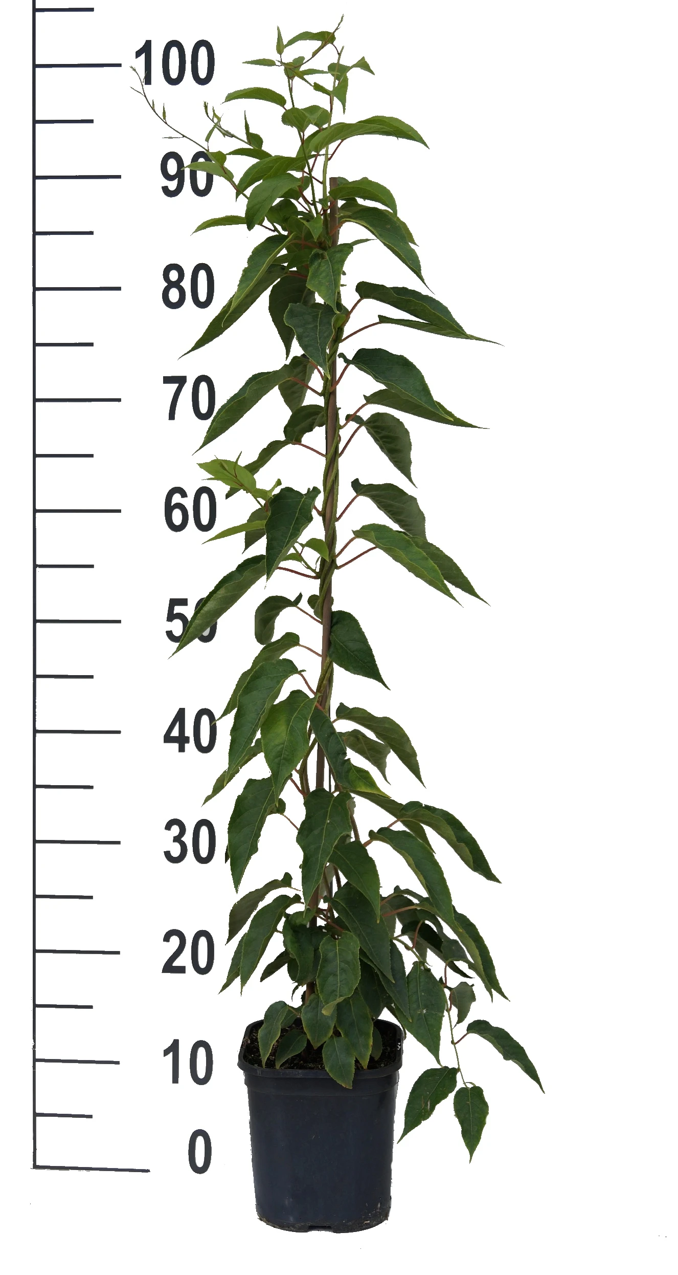 Super Jumbo: Das besondere dieser Sorte ist die deutlich größere Frucht. Genießen Sie die aromatischen und gesunden Kiwis am Besten direkt von der Pflanze und mit Schale. Aber auch auf Kuchen, als Marmelade oder Saft schmecken diese ganz hervorragend. Die duftenden, weißen Blüten erscheinen im Juni und bieten eine reiche Nahrungsquelle für Bienen. Ab Ende September werden die Früchte reif und können verzehrt werden. Aufgrund der rankenden Eigenschaft wird nicht viel Platz benötigt, somit findet die Bayern-Kiwi auch in kleineren Naschgärten einen schönen Standort. Eine Rankhilfe sollte vorhanden sein. Die Kiwis sind winterhart und tragen auch in unseren Regionen zuverlässig.