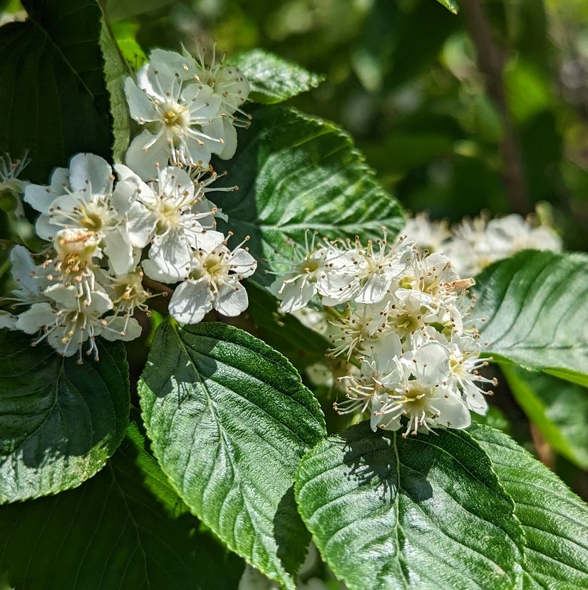 Blüte/Frucht: Im Mai und Juni bildet die erlenblättrige Eberesche eine Vielzahl weißer Blütendolden aus. Die, bei Bienen sehr beliebten, Blüten entwickeln sich bis zum Herbst zu intensiv rosa-farbenen Beeren, welche nur bei der Sorte „Red Bird“ ausgebildet werden. Der Fruchtschmuck bleibt bis in den Winter am Baum hängen und bietet zudem Vögeln eine willkommene Nahrungsquelle.