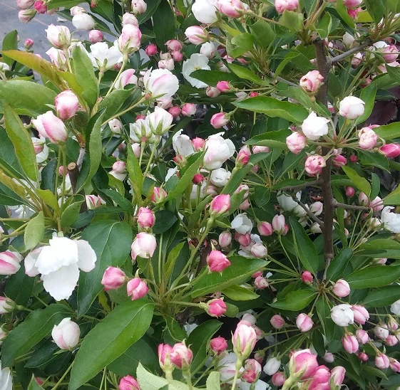 Aus den tiefrosa Knospen bilden sich im April und Mai die intensiv reinweißen Blüten. Im Herbst entstehen dann orangerote Äpfelchen, die das Bäumchen bis nach dem Frost zieren. Zur Blütezeit zieht Adirondack Bienen an und stellt riesige Pollenmengen zur Verfügung. Oft werden Zieräpfel auch in Obstanlagen gepflanzt, wo diese als Pollenspender zur Befruchtung der Bäume dienen. Im Herbst erstrahlt das Bäumchen in einer orangenen Herbstfärbung. Durch die geringe Wuchsstärke ist Adirondack auch für kleinere Gärten und auch für den Kübel geeignet. Die Äpfel lassen sich wunderbar für Dekorationszwecke gebrauchen.